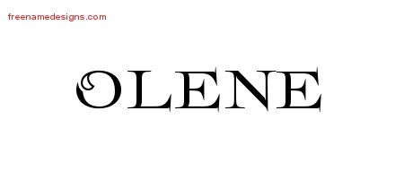 This free name graphic with flourishes lettering is printed with the custom name Olene.