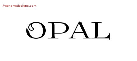This free name graphic with flourishes lettering is printed with the custom name Opal.