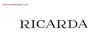 This free name graphic with flourishes lettering is printed with the custom name Ricarda.