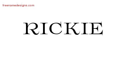 This free name graphic with flourishes lettering is printed with the custom name Rickie.