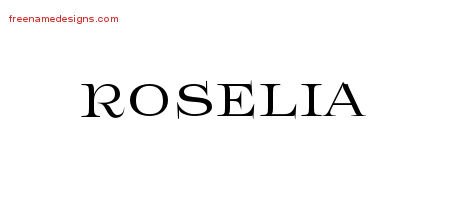 This free name graphic with flourishes lettering is printed with the custom name Roselia.