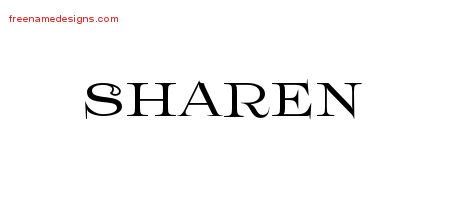 This free name graphic with flourishes lettering is printed with the custom name Sharen.