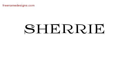This free name graphic with flourishes lettering is printed with the custom name Sherrie.