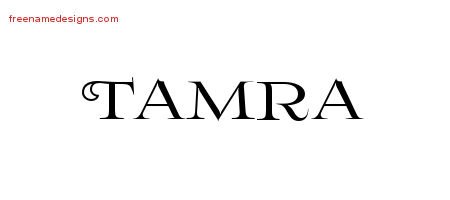 This free name graphic with flourishes lettering is printed with the custom name Tamra.