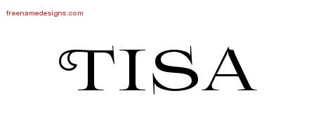 This free name graphic with flourishes lettering is printed with the custom name Tisa.