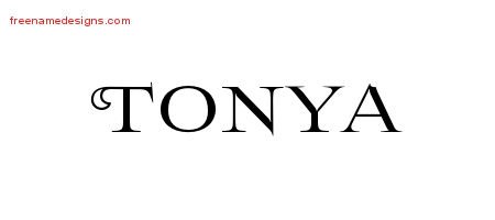 This free name graphic with flourishes lettering is printed with the custom name Tonya.