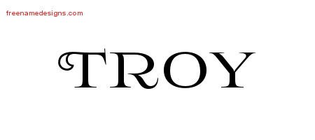 This free name graphic with flourishes lettering is printed with the custom name Troy.