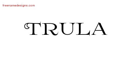 This free name graphic with flourishes lettering is printed with the custom name Trula.