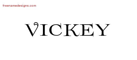 This free name graphic with flourishes lettering is printed with the custom name Vickey.