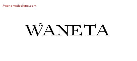 This free name graphic with flourishes lettering is printed with the custom name Waneta.