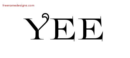 This free name graphic with flourishes lettering is printed with the custom name Yee.