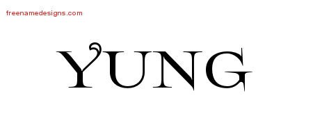 This free name graphic with flourishes lettering is printed with the custom name Yung.