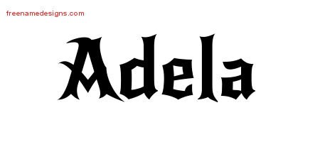 This free name graphic with gothic lettering is printed with the custom name Adela.