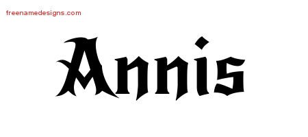 This free name graphic with gothic lettering is printed with the custom name Annis.