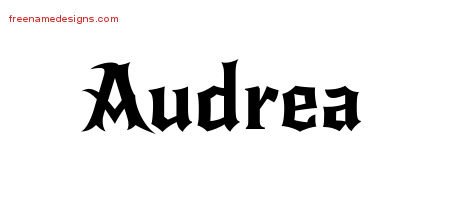 This free name graphic with gothic lettering is printed with the custom name Audrea.