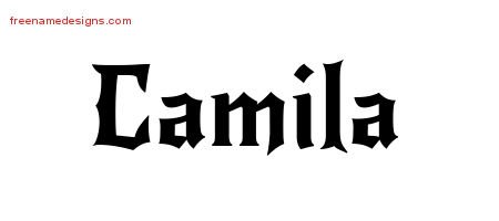This free name graphic with gothic lettering is printed with the custom name Camila.