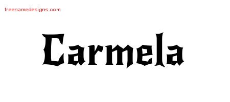 This free name graphic with gothic lettering is printed with the custom name Carmela.
