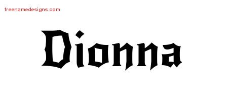 This free name graphic with gothic lettering is printed with the custom name Dionna.