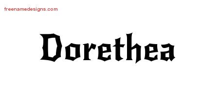 This free name graphic with gothic lettering is printed with the custom name Dorethea.