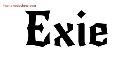 This free name graphic with gothic lettering is printed with the custom name Exie.