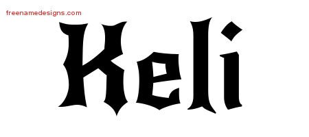 This free name graphic with gothic lettering is printed with the custom name Keli.