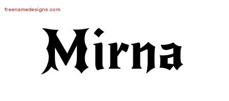 This free name graphic with gothic lettering is printed with the custom name Mirna.