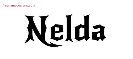 This free name graphic with gothic lettering is printed with the custom name Nelda.