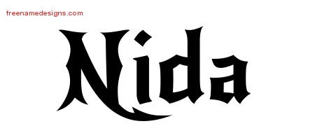 This free name graphic with gothic lettering is printed with the custom name Nida.
