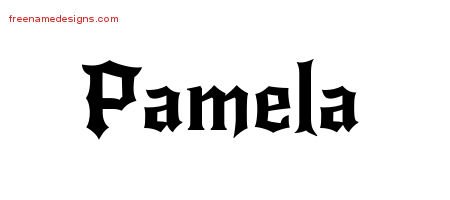 This free name graphic with gothic lettering is printed with the custom name Pamela.