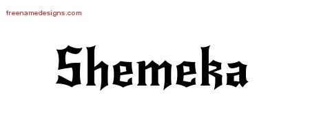 This free name graphic with gothic lettering is printed with the custom name Shemeka.