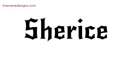 This free name graphic with gothic lettering is printed with the custom name Sherice.