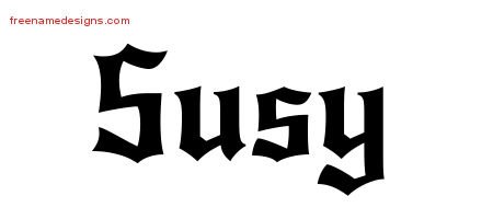 This free name graphic with gothic lettering is printed with the custom name Susy.