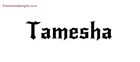 This free name graphic with gothic lettering is printed with the custom name Tamesha.