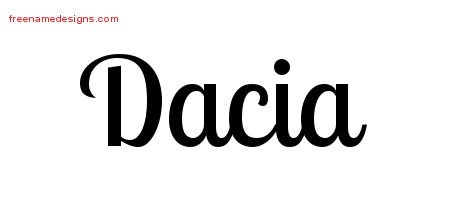 This free name graphic with handwritten lettering is printed with the custom name Dacia.