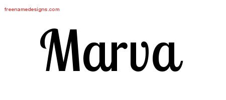 This free name graphic with handwritten lettering is printed with the custom name Marva.