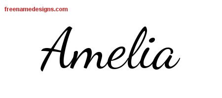 Download graphic Amelia – Print out this lively script name tattoo design.