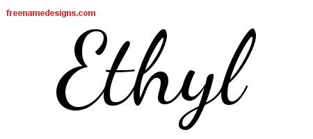 Download graphic Ethyl – Print out this lively script name tattoo design.