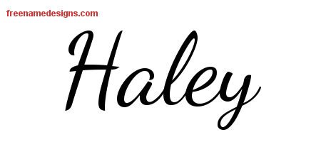 This free name graphic with lively script lettering is printed with the custom name Haley.
