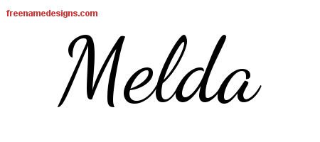 This free name graphic with lively script lettering is printed with the custom name Melda.
