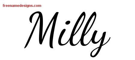 This free name graphic with lively script lettering is printed with the custom name Milly.