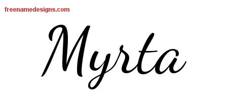 This free name graphic with lively script lettering is printed with the custom name Myrta.