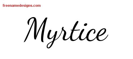 This free name graphic with lively script lettering is printed with the custom name Myrtice.