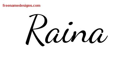 This free name graphic with lively script lettering is printed with the custom name Raina.