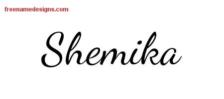 This free name graphic with lively script lettering is printed with the custom name Shemika.