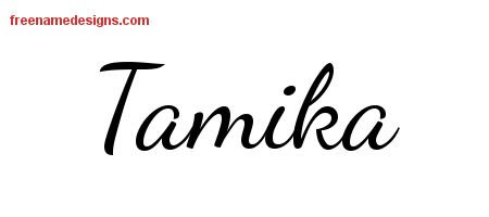 This free name graphic with lively script lettering is printed with the custom name Tamika.