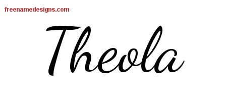 This free name graphic with lively script lettering is printed with the custom name Theola.