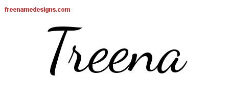 This free name graphic with lively script lettering is printed with the custom name Treena.