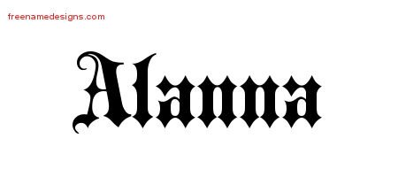 This free name graphic with old english lettering is printed with the custom name Alanna.