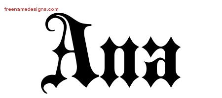 This free name graphic with old english lettering is printed with the custom name Ana.