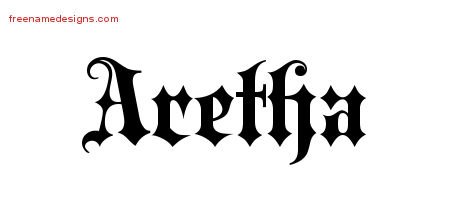 Free name graphic Aretha – Print out this old English name tattoo design.